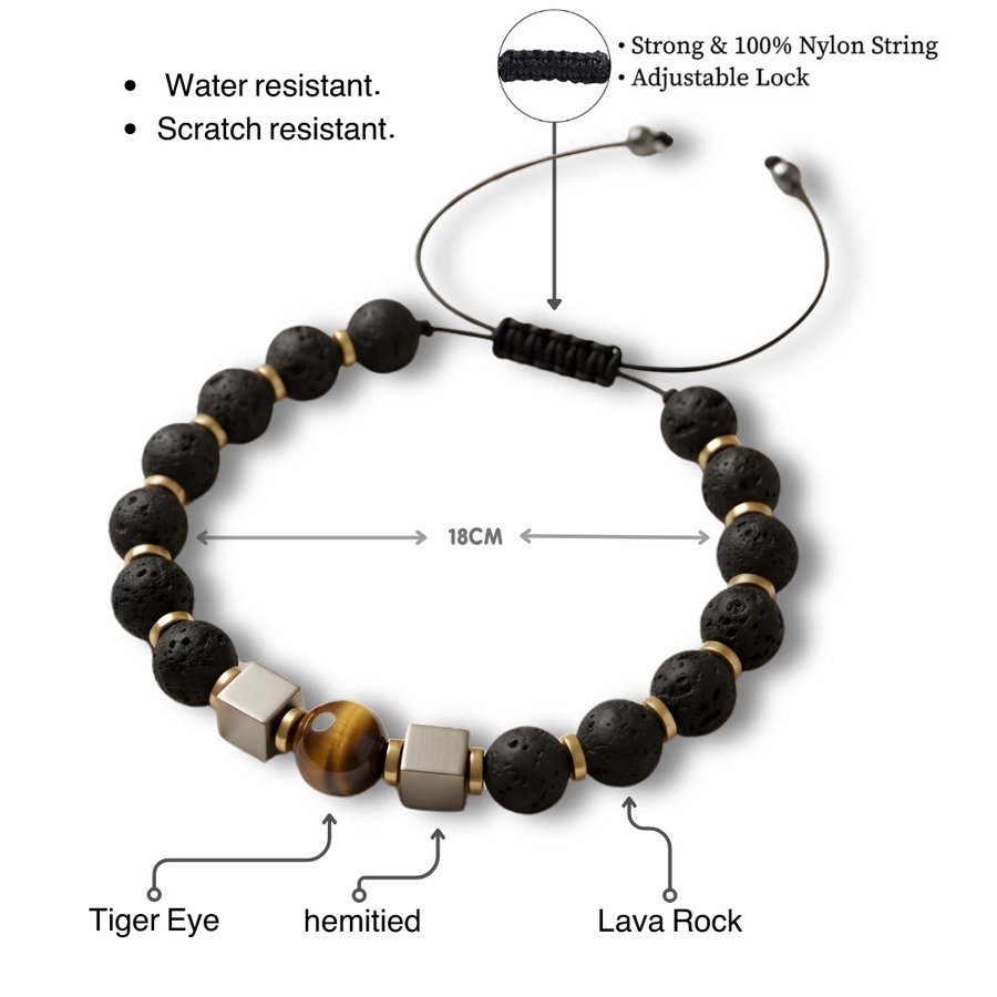 - Stones: 8mm lava rock, 8mm tiger eye stone, 8mm Hematite stone