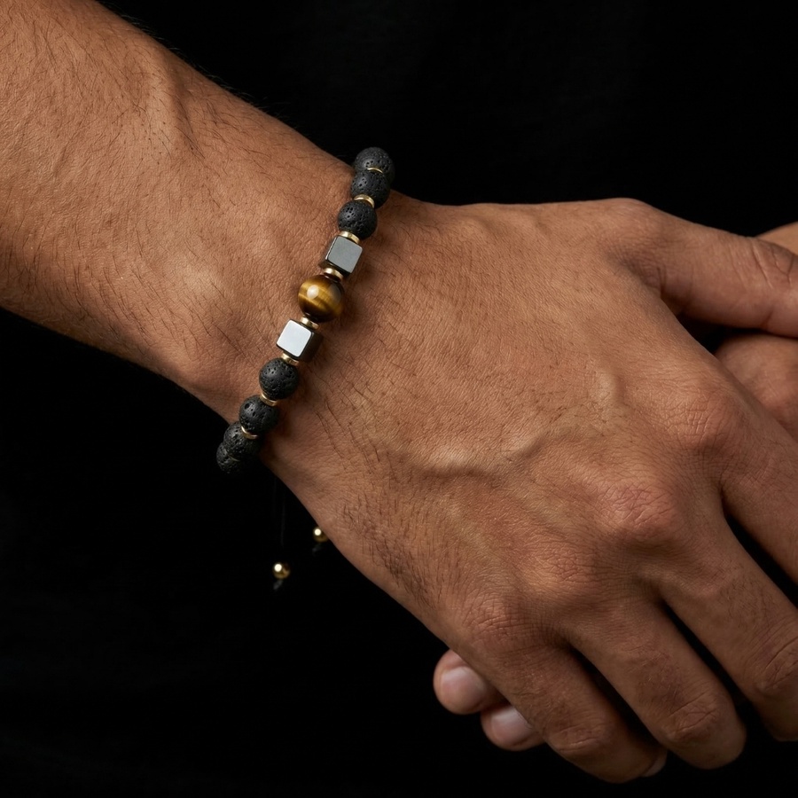 Tiger Cage bracelet is a bold handcrafted bracelet made from powerful natural stones, inspired by the fearless spirit of the tiger. A sharp, masculine piece that elevates your style and stands out with confidence.