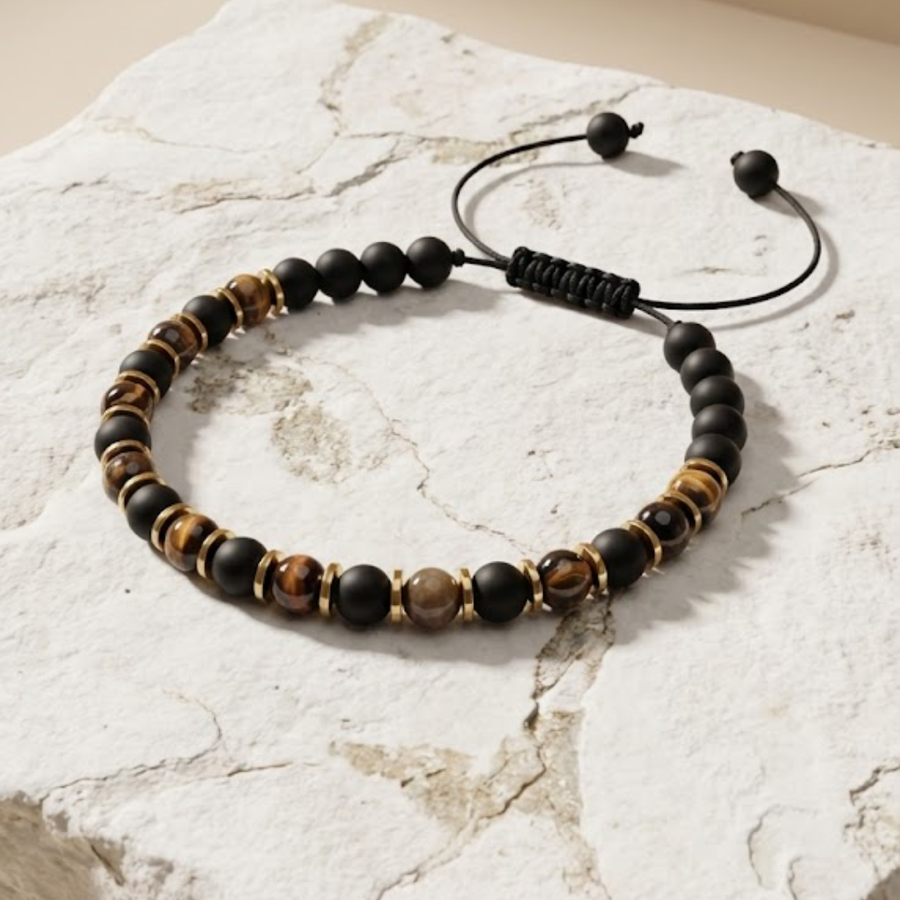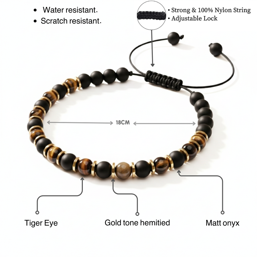 - Stones: 5mm Tiger Eye, 5mm Black Quartz