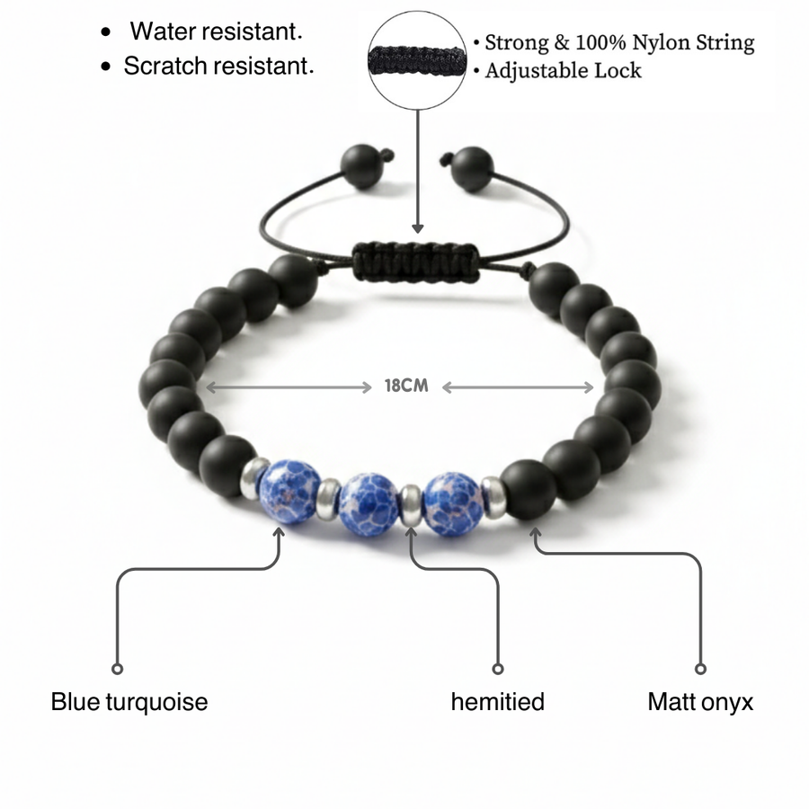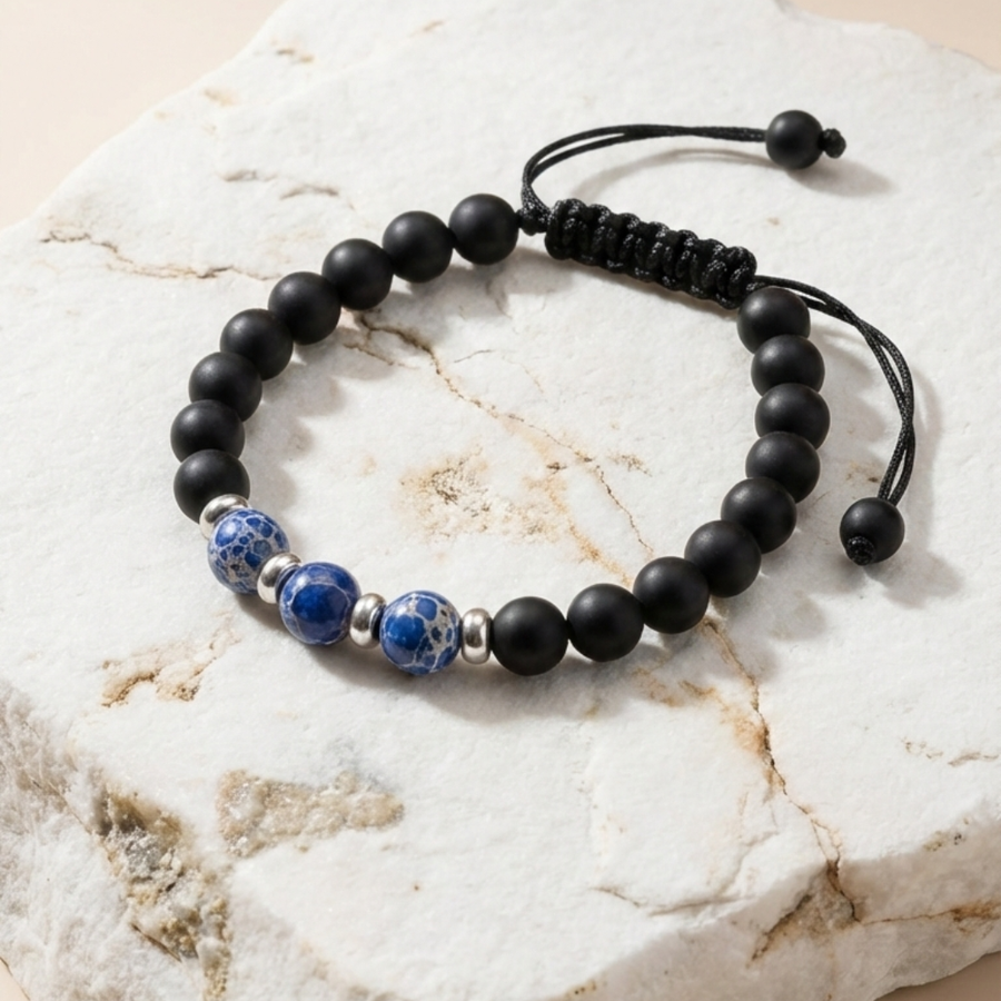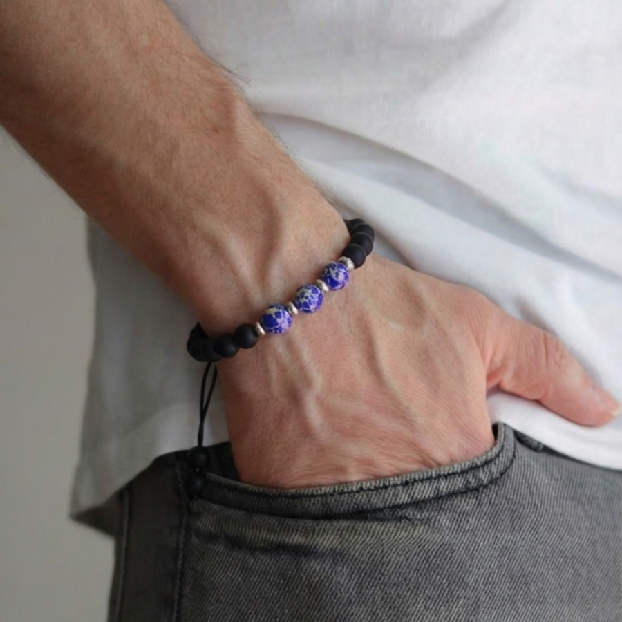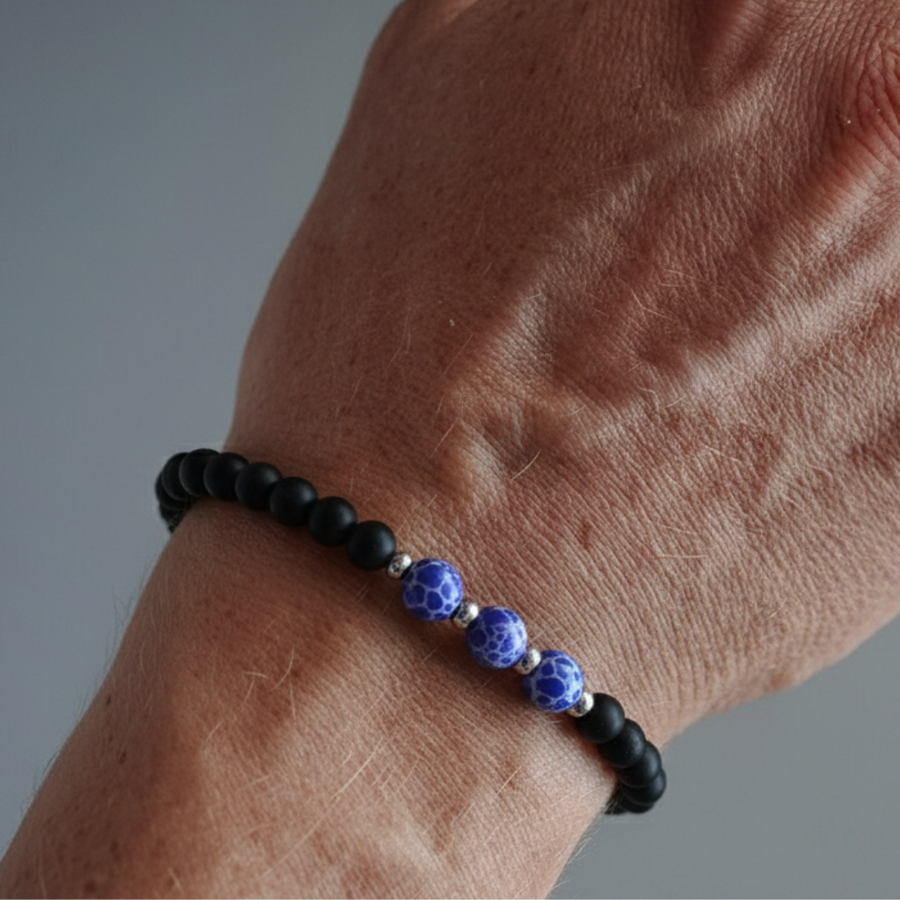 - Stones: 8mm Lapis Lazuli, 5mm Black Quartz